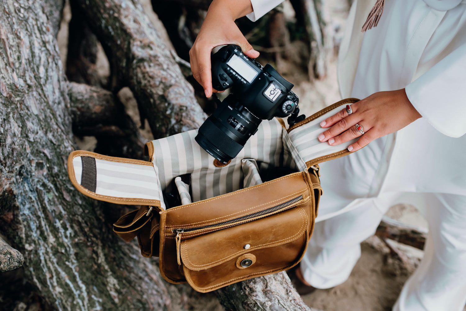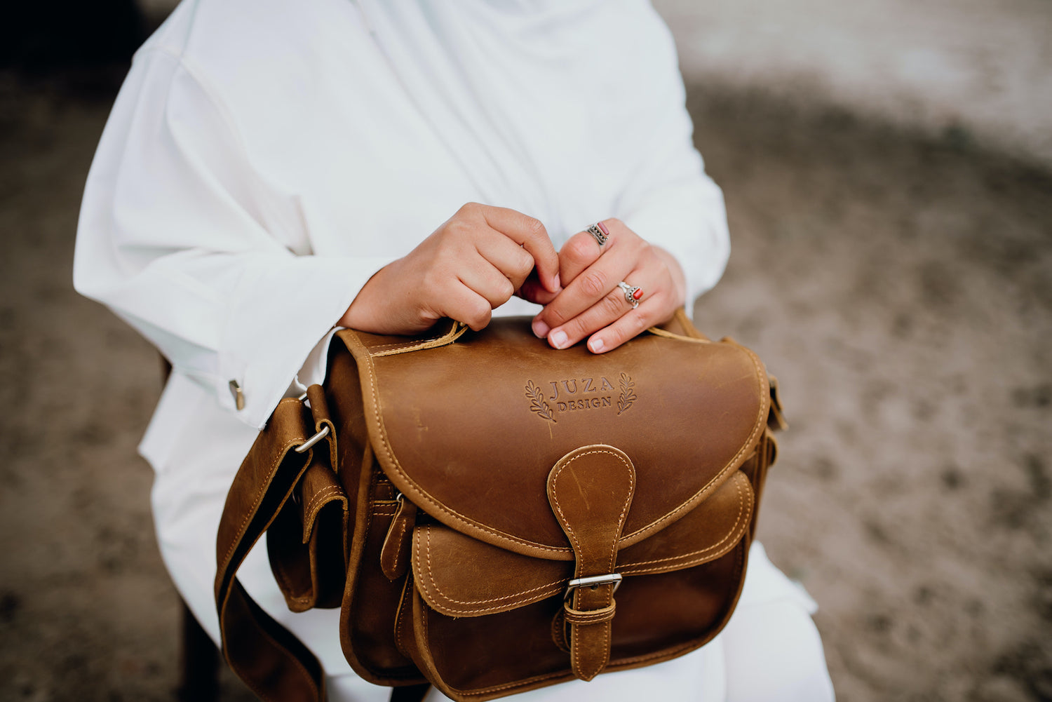 The bag has a magnet button for closure but we added an extra protective leather velcro closure so your valuable gear will have a guaranteed protection.